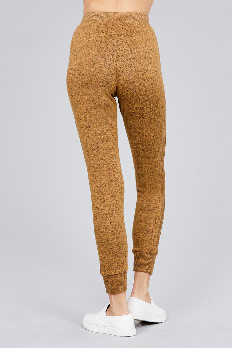 Waist drawstring side rib detail brushed hacci pants