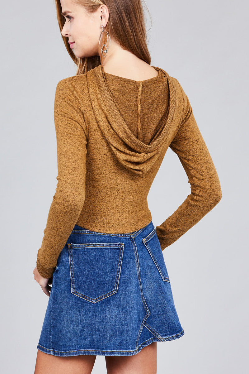 Long sleeve hoodie with drawstring brushed hacci crop top